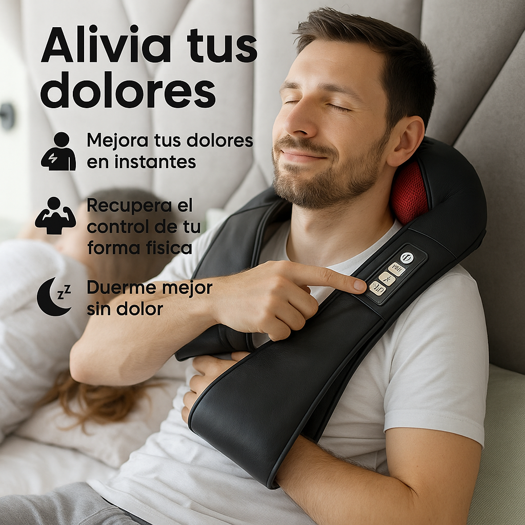 ¿Te duele el cuello y la espalda después de un día largo? Este masajeador es la solución que estabas esperando. Relájate y siente cómo el dolor desaparece en minutos. Es cómodo, fácil de usar y perfecto para aliviar esas tensiones acumuladas. Tu cuerpo te lo agradecerá desde el primer uso.